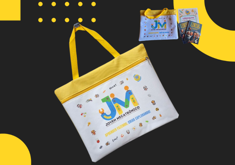 Com design exclusivo da marca, ela é perfeita para guardar, transportar e organizar os materiais usados nas atividades da Jovem Mecatrônico — seja em sala de aula, no Ateliê, em casa ou em eventos escolares.